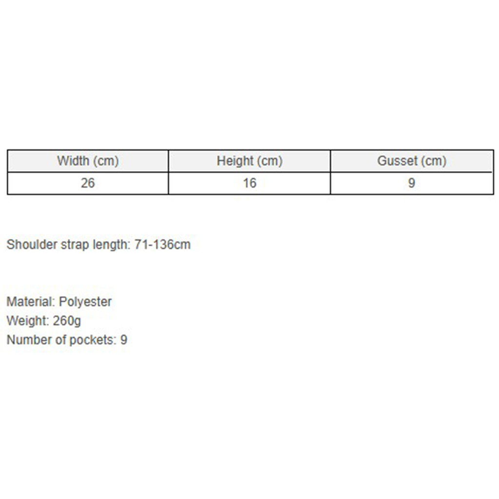 – Shoulder strap length: 71-136cm